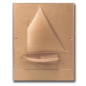 Cast from hand-carved patterns, this plaque represents the traditional Beetle Cat East Coast sailing vessel from the late 19th and early 20th century.