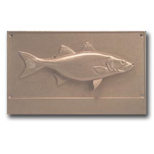 Cast from hand-carved patterns, this plaque represents the traditional Striped Bass.